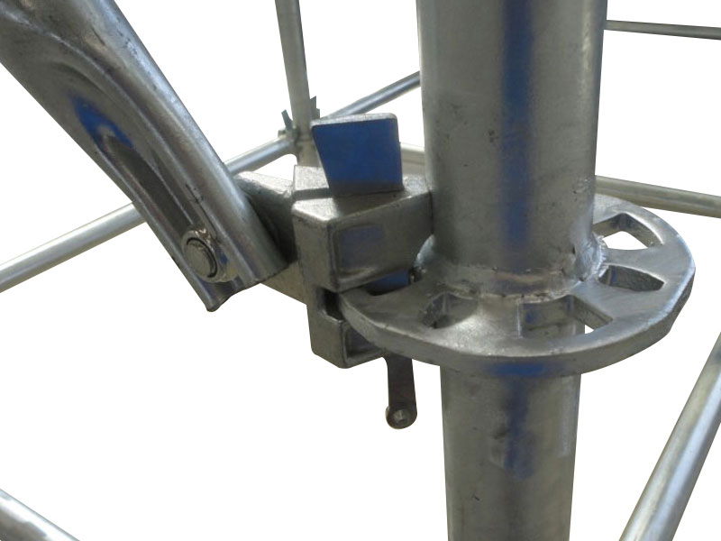 盤扣腳手架是進步前輩的模塊式腳手架系統(tǒng),具有機能高、節(jié)約人工、搭拆便當、節(jié)約用量、整體美觀。是續(xù)扣件式、碗扣式腳手架之后的理想進級換代產物。這種盤扣式腳手架是經由過程打破傳統(tǒng)腳手架的扣件螺栓緊固連接方式,操作預先焊接在橫桿兩頭的接頭裝置和斜桿上的接頭裝置、立桿上焊接的八孔圓盤,操作重力楔形自鎖銷的道理,實現(xiàn)代替鋼管和扣件,將橫桿和立桿及斜桿連接起來,形成平面三角不變結構,再將平面結構進行立體組合,終形成不變的空間結構的技術。